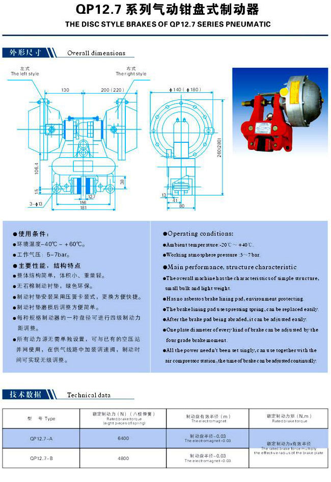 QP12.7系列氣動(dòng)鉗盤(pán)式制動(dòng)器