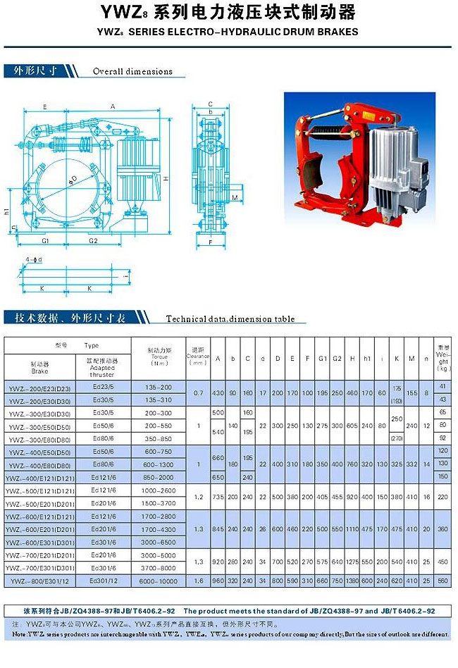 YWZ8系列電力液壓塊式制動(dòng)器
